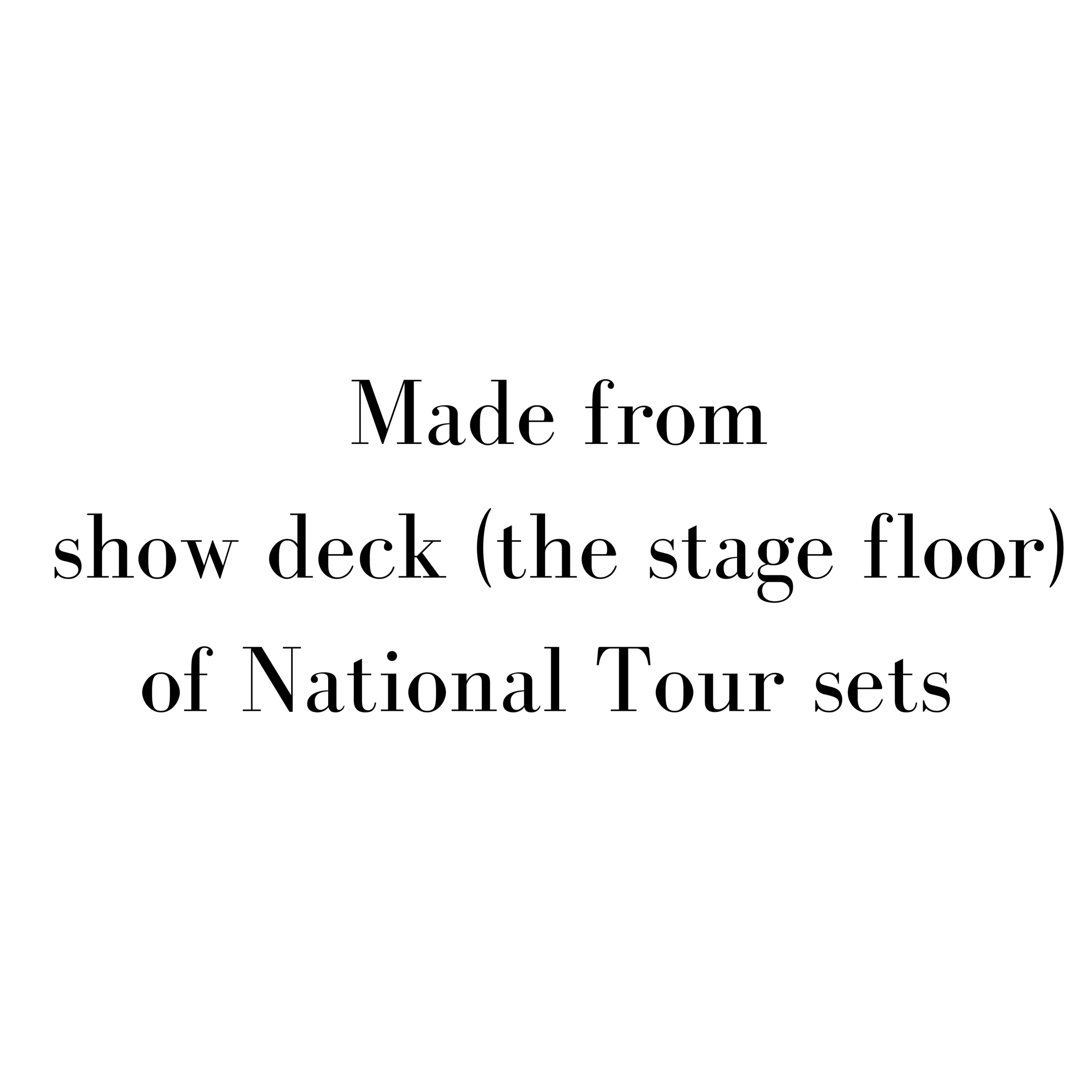 SCENERY now makes accessories! These bangles are made from show deck (the stage floor) of National Tour sets.