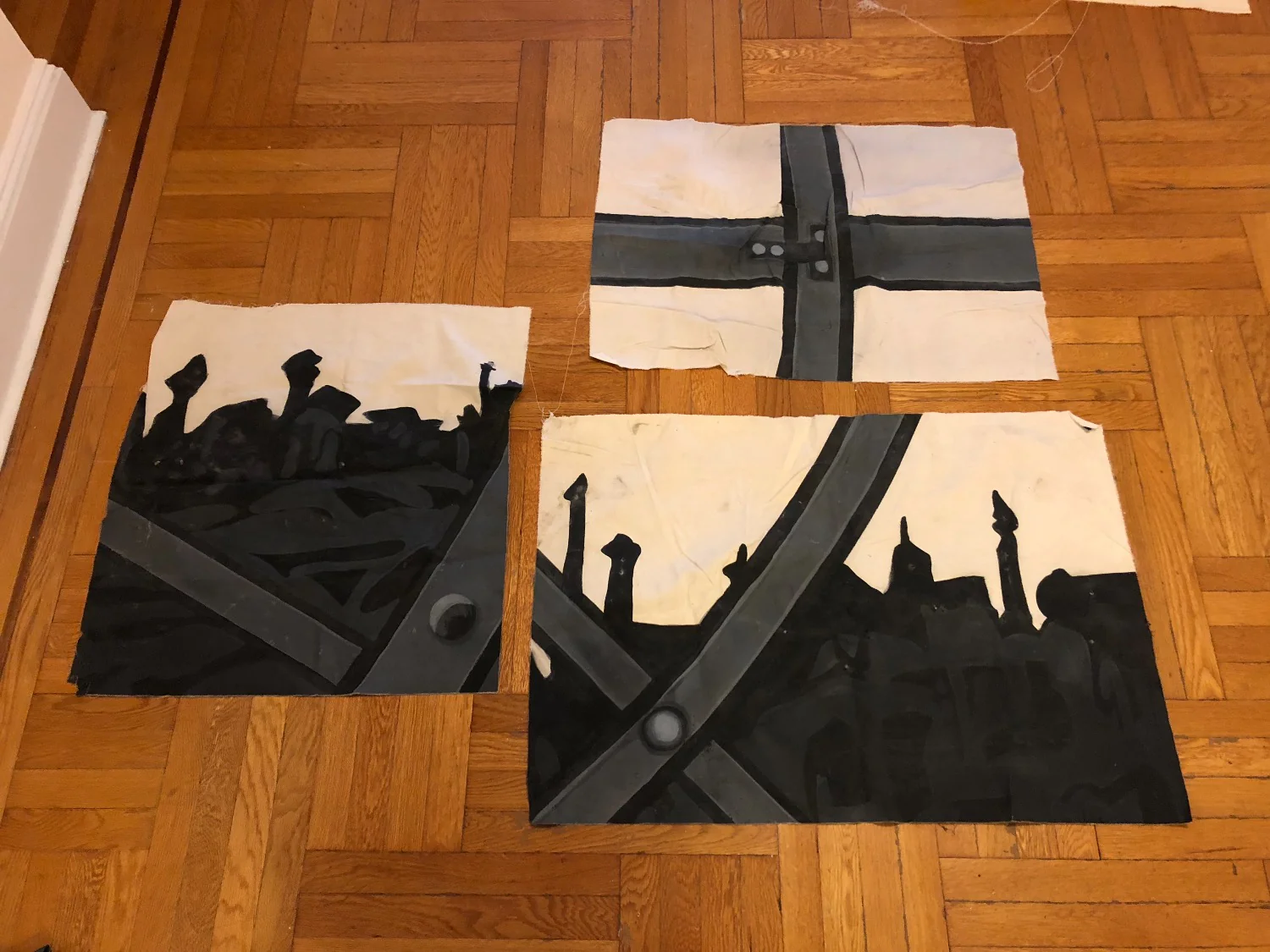 This bag is made uisng a drop from the Mexico City production of WICKED, Scenic Design by Eugene Lee, and the other side is hand painted by scenic artist Rebekah Lazaridis on black velour masking.